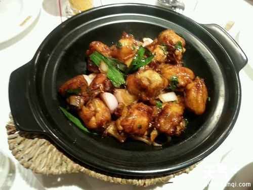 江西传统风味的三杯鸡,烹调鸡块时加入甜米酒、猪油、酱油各一小杯,不放汤水,用炭火将鸡块炖熟而得名。三杯鸡这道菜色泽酱红、原汁原味,色香味俱全。相传与民族英雄文天祥有关。