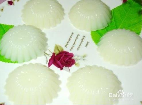 4、 倒入任何你喜欢的形状的模具或容器中放凉,用小刀沿边脱模倒扣出来即可,可切块或直接用勺挖着吃、
