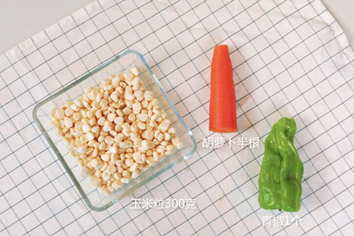 2.玉米粒洗净待用,青椒去蒂去籽切小丁;