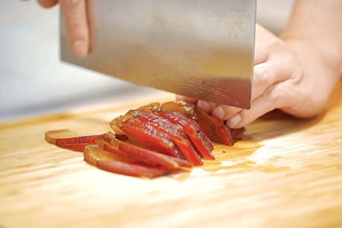 1、腊肉选用新鲜的带皮五花肉,分割成块,用盐和少量亚硝酸钠或硝酸钠、黑胡椒、丁香、香叶、茴香等香料腌渍,再经风干或熏制而成, 具有开胃祛寒、消食等功效。