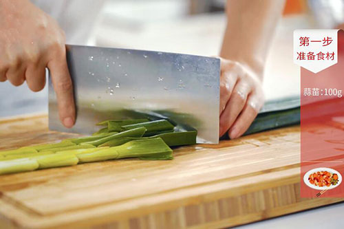 1.蒜苗斜切段,姜1块切末,蒜2瓣切末;