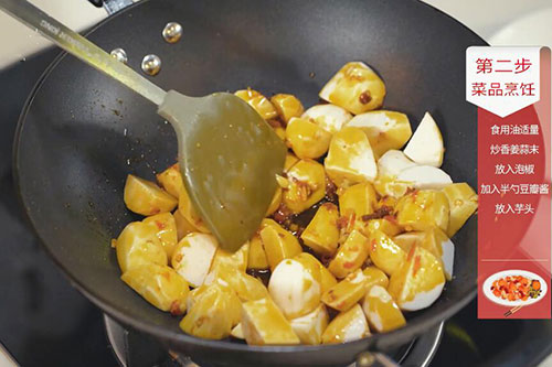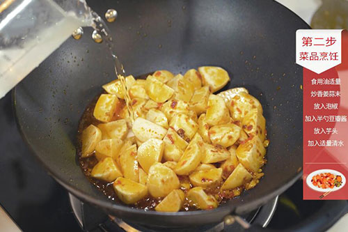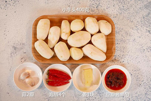 2. 锅中放入适量油,油温烧至7成热,放入泡椒、豆瓣酱半勺、姜蒜末炒香,放入芋头翻炒均匀,家常芋头的做法 家常芋头怎么做好吃倒入适量清水煮15分钟;