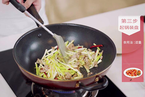2、炒肉丝的时候容易粘锅,在热锅放油后,现房蒜末和辣椒丝炒香,爆=炒香后再放肉丝炒,不容易粘锅;