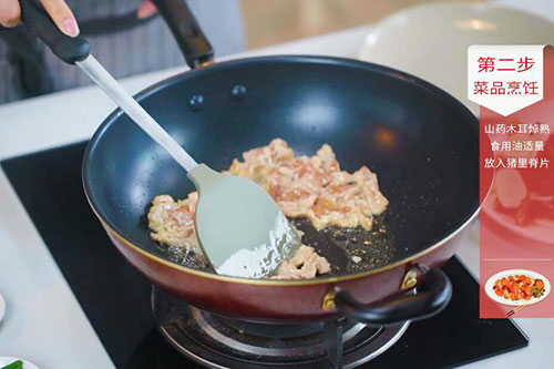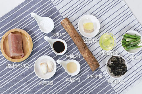 干木耳泡发,山药切片,山药木耳炒肉的做法 山药木耳炒肉怎么做好吃放盐水中浸泡;小葱切葱段,姜切丝,猪里脊切片,放生抽、淀粉等腌制5分钟;清水烧开,放山药、木耳煮1分钟捞出;油锅烧至7成热,放姜丝、肉片翻炒至变色,放山药、木耳、葱段翻炒1分钟,调盐、鸡精即可。