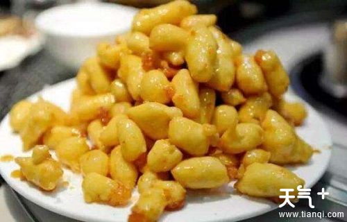 内蒙古经典的风味名菜,以奶豆腐为主料烹制而成。将奶豆腐切成块状、裹上面粉,挂上用鸡蛋清、淀粉、面粉制成的松糊入油锅炸熟,呈金黄色捞出。锅内加适量白糖熬成拔丝糖浆,倒入炸好的奶豆腐,并撒些芝麻,裹匀糖浆装盘即可。此菜色泽金黄,口味甜香,上席千丝不断,是酒席中的佳品。