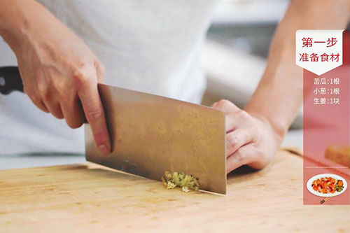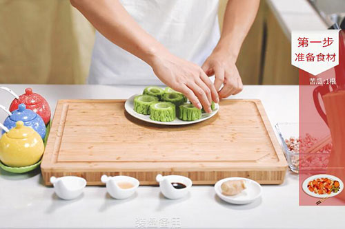1.苦瓜洗净,切去两头,切1.5厘米左右的段,挖去苦瓜瓤;