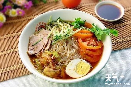 正宗的朝鲜水冷面一般在夏天吃,朝鲜冷面多用碗食用,亦有用碟子盛装的,但冷面的汤就相对较少了。把面条煮熟后,用凉水抄干后的面条,再放进盐、醋、酱油等调味料,并再加番茄、黄瓜等青菜作伴菜,即可食用。【详情】