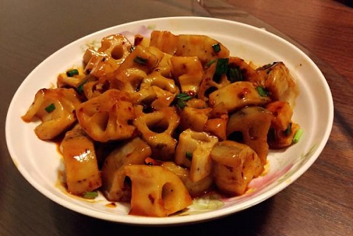 3、喜欢吃辣的人,可以在藕丁里面拌上一些豆瓣酱。