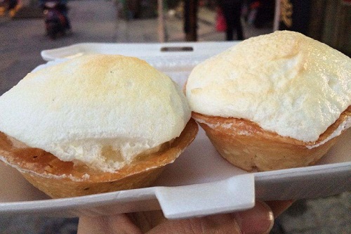 奶油小攀是绍兴特小吃的代表之一,也是传统小吃,它的外观比较像蛋挞,圆圆的,色泽洁白。用鸡蛋、杂粮、水果浆等材料制作而成,吃起来松香可口,没有任何的添加剂,非常的健康。奶油小攀做工比较精细,吃起来口感绵软,清甜适口,基本上男女老少都喜欢吃。