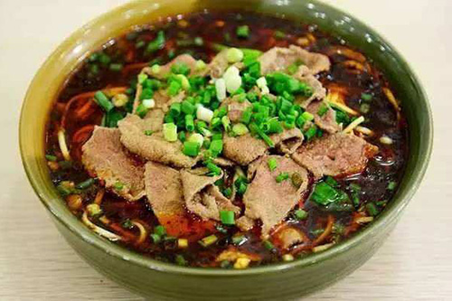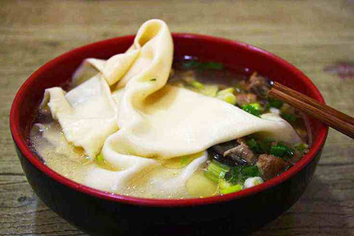 铺盖面,铺盖面在四川各地面馆基本上都有,铺盖面其实就是一种特色面食,“铺盖”就是四川话中的被子的意思。铺盖面在四川地区很受欢迎,一般是将面团扯成巴掌大小,拉扯之后下锅煮就可以了,铺盖面吃起来比一般的面条更加有韧劲,配上传统的麻辣牛肉汤或者鸡杂汤等,肉汤和面片味道结合在一起,味道浓香。