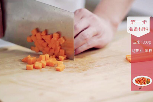 3.胡萝卜切成小丁;