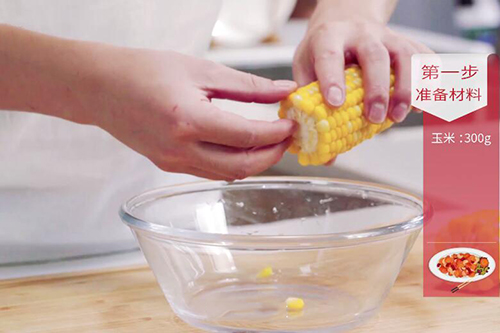 2、用玉米粒罐头来做,口感会更好些;