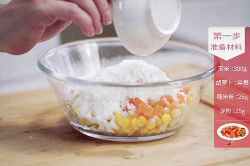 1、玉米粒表面一定要都裹上淀粉,玉米粒表面不能太干;