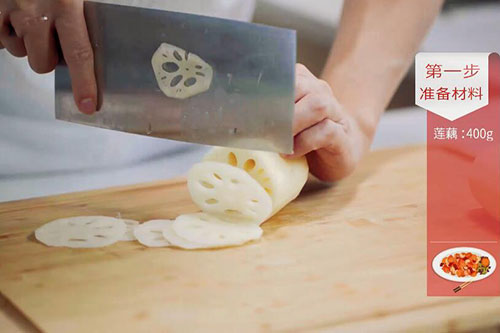 1.莲藕去皮洗净切片,放入清水中浸泡;