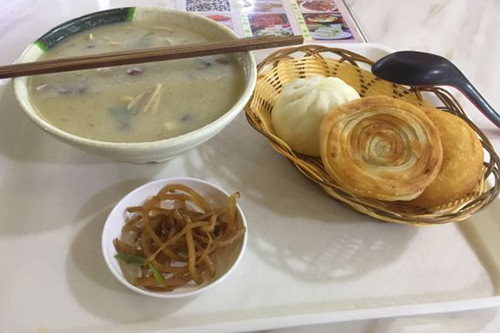 这家店也是很火爆的,虽然开业时间不算很长,但是已经很受欢迎了,他家是开放自助式早餐,拿着餐盘自己选,甜沫三块一大碗,非常的实惠。这家的甜沫不那么咸,胡椒味道也刚好,馅饼都是刚刚出炉的,粉丝肉末,味道很不错,这家店价格不贵,但是都是地道的济南小吃风味。
