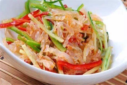 将鱼肉切丝,加入食醋浸泡,知道鱼肉膨胀然后吸干水分,加上黄瓜丝,香菜,辣椒油等调味料,搅拌均匀就可以了。生拌鱼吃起来鲜嫩爽口,鱼肉嫩而不腥。鱼肉本身含有很高的蛋白质,可以强身健体,适合所有人群吃,是满族传统风味佳肴。
