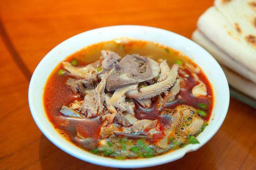 羊杂碎在延安是很有名的美食,很多人吃,所以来到二道街美食街当然要尝一尝了,这里有很有名的店,可以去试试。羊杂碎采用的是羊肝、羊心、羊肠、羊肺、羊肚儿等材料,洗干净之后剁块,放进一个大锅里面烩一烩,放上调味料就可以了,这种做法很符合陕北人的口味,同时也保留了羊肉的鲜美。