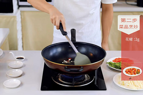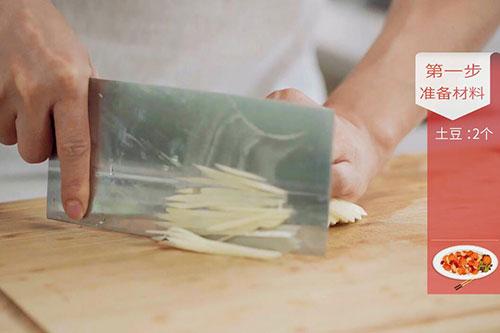 4.放入土豆丝大火爆炒至土豆丝断生;
