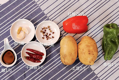 1.青红椒切丝,土豆切丝,放入清水中清洗2遍,捞出待用;