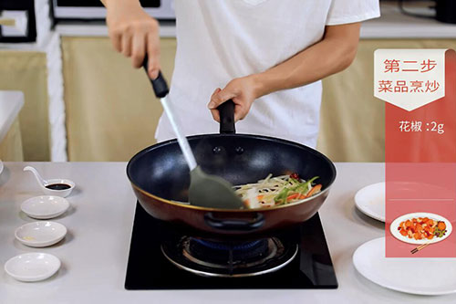 6.放入盐半勺、鸡精半勺、醋1勺翻炒均匀即可。
