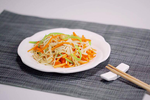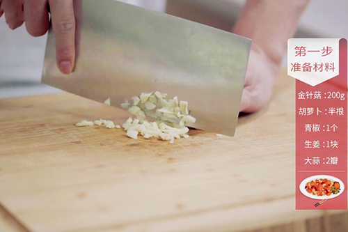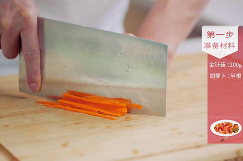 今天介绍大家素炒金针菇的做法,准备食材金针菇,胡萝卜,姜蒜,青椒等等,金针菇去根部,胡萝卜切丝,姜蒜炒香,放胡萝卜丝一起炒,断生后,放青椒丝,调味出锅即可,素炒金针菇的做法具体如下。