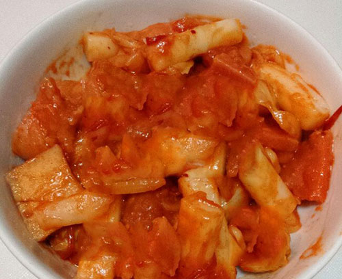 辅料:韩式甜辣酱1勺,葱段半碗,食用油;
