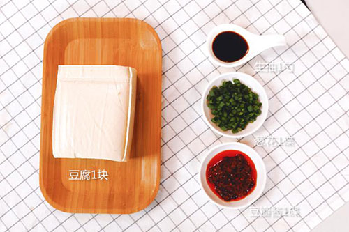 1.豆腐洗净切1.5厘米的小方块,炒豆腐丁的做法 炒豆腐丁怎么做好吃小葱1根切葱花;