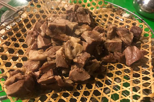 这家店的名气还是很大的,主要是吃猪蹄,还有猪皮、鸡排、鸭肠和小吃,店面虽然不算大,但是已经非常火爆了。烤猪蹄味道很好,微辣,吃起来很有嚼劲,基本上每个人都会买上好几个带走,这就是魅力。他家的烤猪蹄价格不贵,值得推荐。