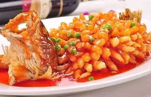松鼠桂鱼也被叫做松鼠鳜鱼,可以用桂鱼最为材料,也可以用鳜鱼,松鼠桂鱼是苏州地区的传统地方名菜之一,是江苏省苏州市地方传统名菜。松鼠桂鱼很多人都知道,将鱼肉去骨,然后炸成金黄色,最后浇上热气腾腾的卤汁即可,这道菜因为外观像松鼠,所以取名松鼠桂鱼,外脆里嫩。