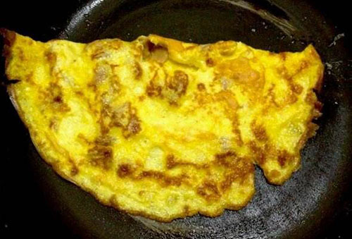 7.平底锅里面倒油,油热了之后倒入打发好的鸡蛋,两面煎熟之后即可出锅装盘。