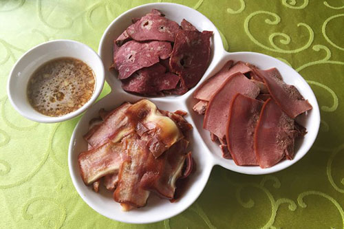 血糕是用荞麦面、猪血配上其他的配料蒸制而成的一种糕,再切片,然后再油炸,抹上蒜汁之后再吃,血糕历史悠久,据说在清代的时候就有了。血糕是一种营养丰富的安阳特色菜,味道鲜美、酥香适口,深受当地人的喜爱,很多餐厅都可以点到。