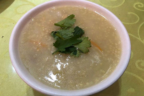 粉浆饭大家可能不是很熟悉,这是河南安阳的“三大宝”之一,粉浆饭的特点就是酸、香、甜、绵,传统地道的特色美食。粉浆饭用的是绿豆制作粉皮粉条后的余汁,加入了小米、黄豆、花生米、白菜、猪油等食材,再加香油、香菜等食材熬制而成,味道丰富,让人回味无穷。