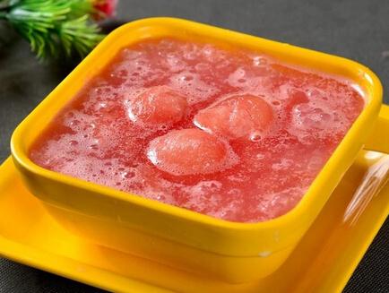 1、将部分西瓜打成汁,加入白糖和酵母搅拌至融化,然后加入西瓜果肉。