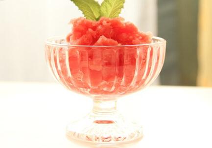 2、将西瓜汁装入容器里,放入冰箱里冷冻。