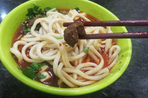 羊肉搓面是宁夏银川地区非常盛行的一道面食,也是银川名吃,非常具有代表性的味道。口感劲道,面精肉鲜。羊肉搓面是将面搓成筷子般粗,下锅煮熟,浇上用羊肉原汁、羊肉丁和新鲜蔬菜烩成的汤,最后调入了辣椒红油调味,鲜香无比,羊肉新鲜可口,汤料浓香。