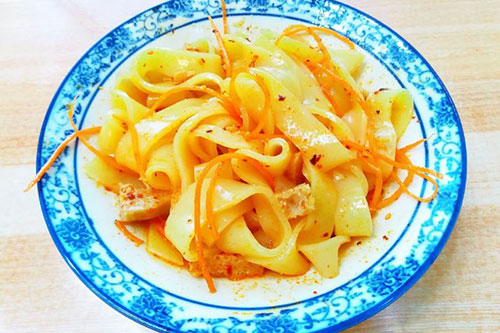 酿皮是银川名吃,当地风味,招牌上写的是“酿皮”,但本地人都叫“凉皮”。酿皮很受欢迎,口感劲道,清爽香辣,特别适合炎热的夏天吃。酿皮是一道小菜,很多餐厅都有,配上其他的银川美食一起吃,味道更好。