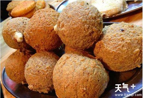 这是一种油炸糯食,在糍粑中放入豆沙馅,用油烹炸而成,具有色泽金黄、外酥内软、糯香爽口的特点。馅心咸鲜,老少皆宜。贵阳清早街头巷尾都有卖,一张桌子,架一油锅,现做现炸,人们老远就闻到浓浓的糯米香,路人走上前丢下一元钱拿起一个边走边吃,也有买了回家当早餐。外脆里糯,喜甜爱咸都可得到满足,吃完满口留香。