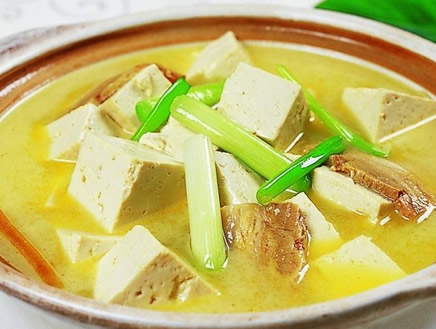大豆有quot;植物肉quot;的美誉,它是植物性食物中蛋白质最优秀的食品。用大豆做成的豆腐,当然蛋白质也不会差。