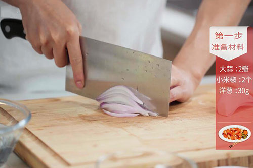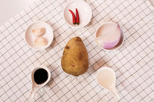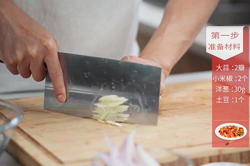 土豆1个,洋葱30克,小米椒2个;