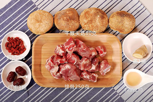 排骨250克了,干猴头菇80克;