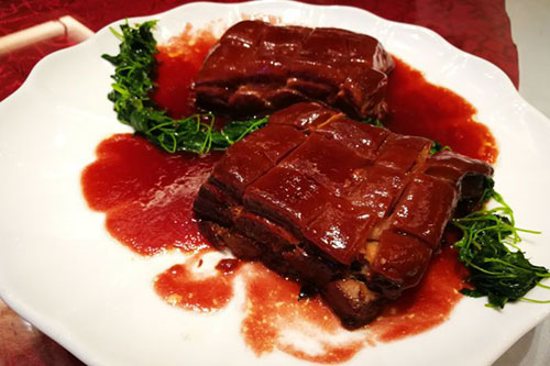 樱桃肉是一道苏菜,始创于乾隆年间,樱桃肉的特点是色泽樱红,光亮悦目,酥烂肥美。其颜色红亮,形态圆小,皮软味甜咸,富油脂,是上佳的下酒菜和下饭菜。樱桃肉是最起码的条件是色诱,如肉面要切得如樱桃般大小,排列整齐,色泽也应像樱桃般鲜艳透红、亮丽诱人。