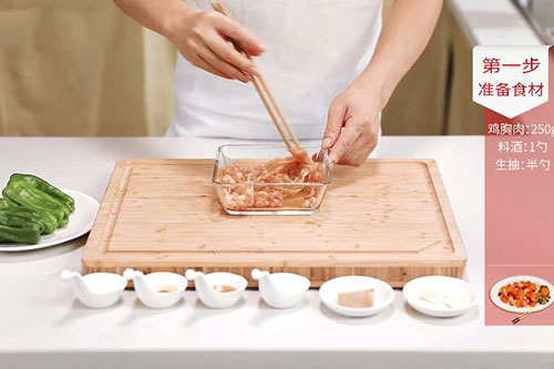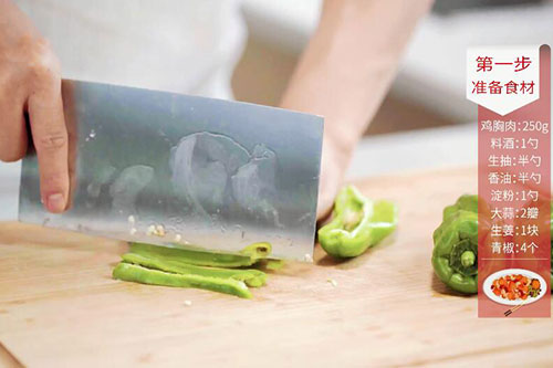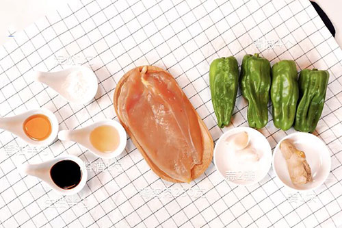 鸡胸肉250克,青椒4个;