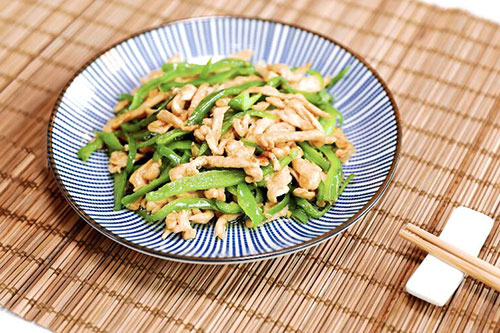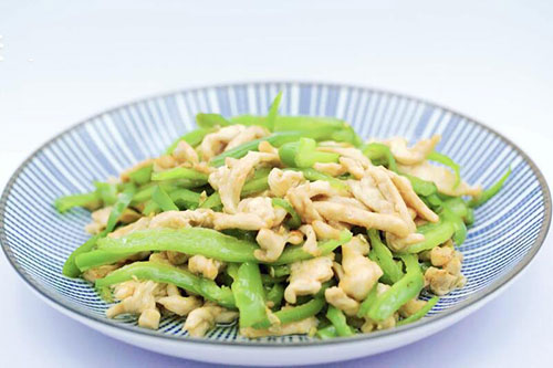 青椒鸡丝做法大全 家常青椒鸡丝的做法介绍鸡胸肉营养健康,很多人都喜欢吃,今天就介绍家常青椒鸡丝做法大全,鸡胸肉切丝加生抽等腌制10分钟,姜蒜切末,油锅烧至7成热,放鸡丝炒至变色捞出,留底油,放姜蒜末炒香,放青椒丝炒至断生,放鸡肉丝,加调味料炒匀出锅即可。