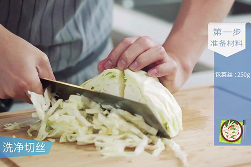 1.包菜洗净切丝;