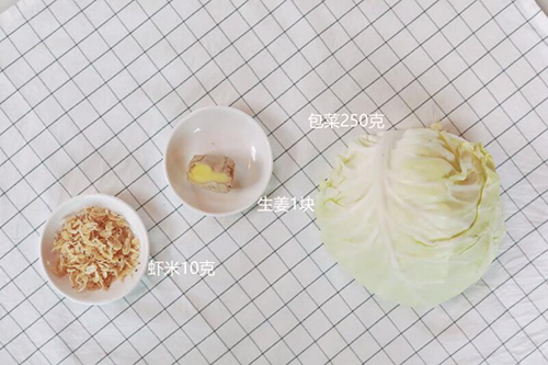 主料:包菜250克,虾米10克;