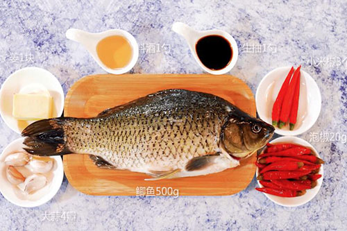 鲫鱼500克,泡椒20克;