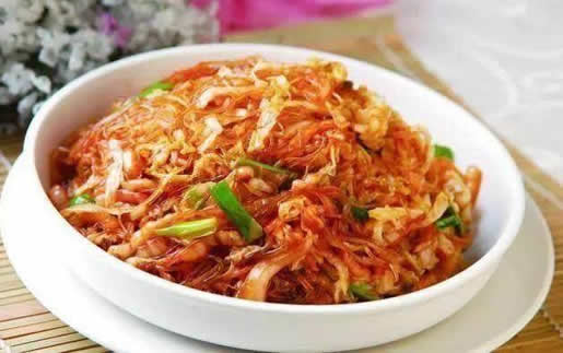 1、用热水浸泡洗净的粉丝,冷排水,清洁切白菜