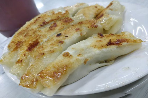 三鲜锅贴是很多人都知道的青岛的传统名点。主要是用猪肉作为主要馅料,还添加了各种其他的食材,比如韭菜、海米、扇贝柱。三鲜锅贴的皮子做的好坏,代表了师傅制作三鲜锅贴的功力,皮子做的好,吃到嘴里又香又不油腻才是三鲜锅贴中的上品。