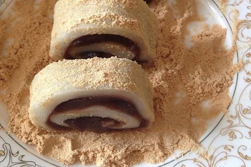 驴打滚是老北京特色小吃,地道的老北京传统风味,驴打滚成品还是很好看的,因为制作到最后会撒上一些黄豆面,所以取名“驴打滚”。驴打滚采用的是黄米面、黄豆面、澄沙、桂花等食材制作而成,工序讲究,制作好的驴打滚外面是黄豆面,里面是金黄色,豆香味很浓,非常好吃。
