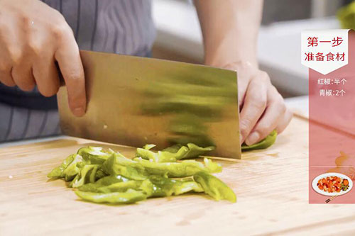 鸡胸肉300克,青椒2个,红椒半个;
